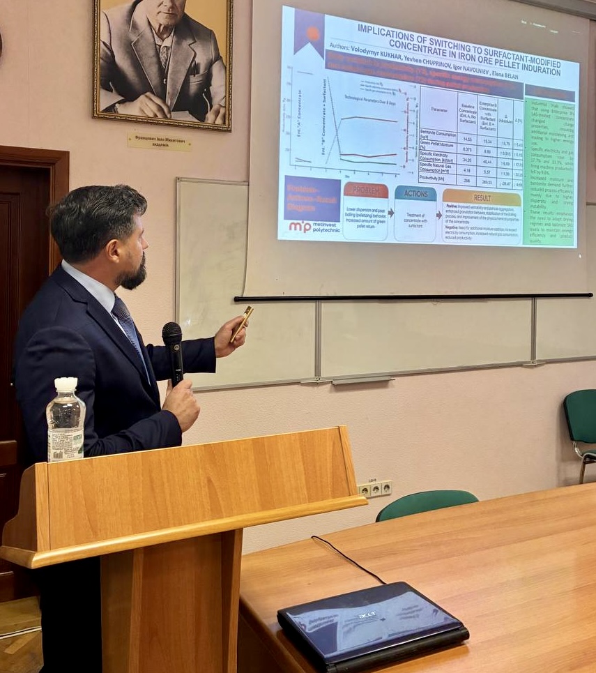 Представлені під час конференції результати наукової роботи – це перші кроки у вивченні впливу поверхнево-активних речовин на якість окатишів. Стаття присвячена застосуванню ПАР під час виробництва високоякісних окатишів, коли використовується сировина іншого підприємства. Науковий аналіз ґрунтувався на результатах реального експерименту, проведеного на Центральному гірничо-збагачувальному комбінаті Метінвесту у 2024 році. — Наше дослідження є прикладом того, як експеримент і виробництво можуть взаємодіяти, а не існувати окремо. Коли те, що ми вивчаємо в лабораторії, відразу може бути перевірено на практиці – тоді наука справді працює, — розповів Ігор Навольнєв.