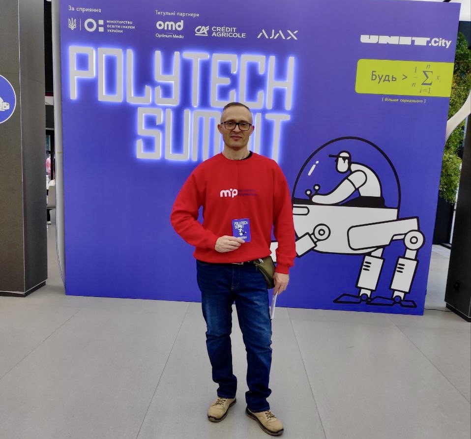 Сергій Мірошниченко відвідав усі змістовні блоки програми та взяв участь у Polytech Quest – інтерактивному форматі, який передбачав виконання завдань на стендах партнерів. Він обійшов усі локації OMD Optimum Media Ukraine, Ajax Systems, Credit Agricole Bank, Lenovo, Bolt, SKELAR та Universe Group, виконав усі завдання й отримав додаткові призи від організаторів.
